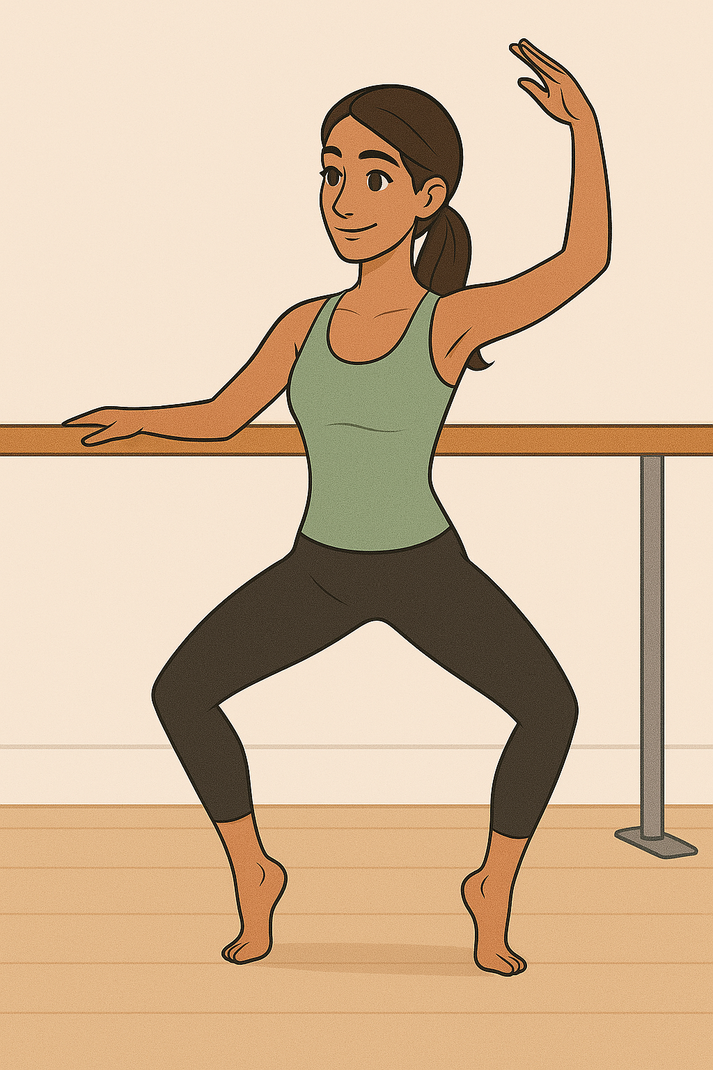 Pulling off the barre, feet parallel, knees bent to a 90 degree angle, positioned over the ankles.